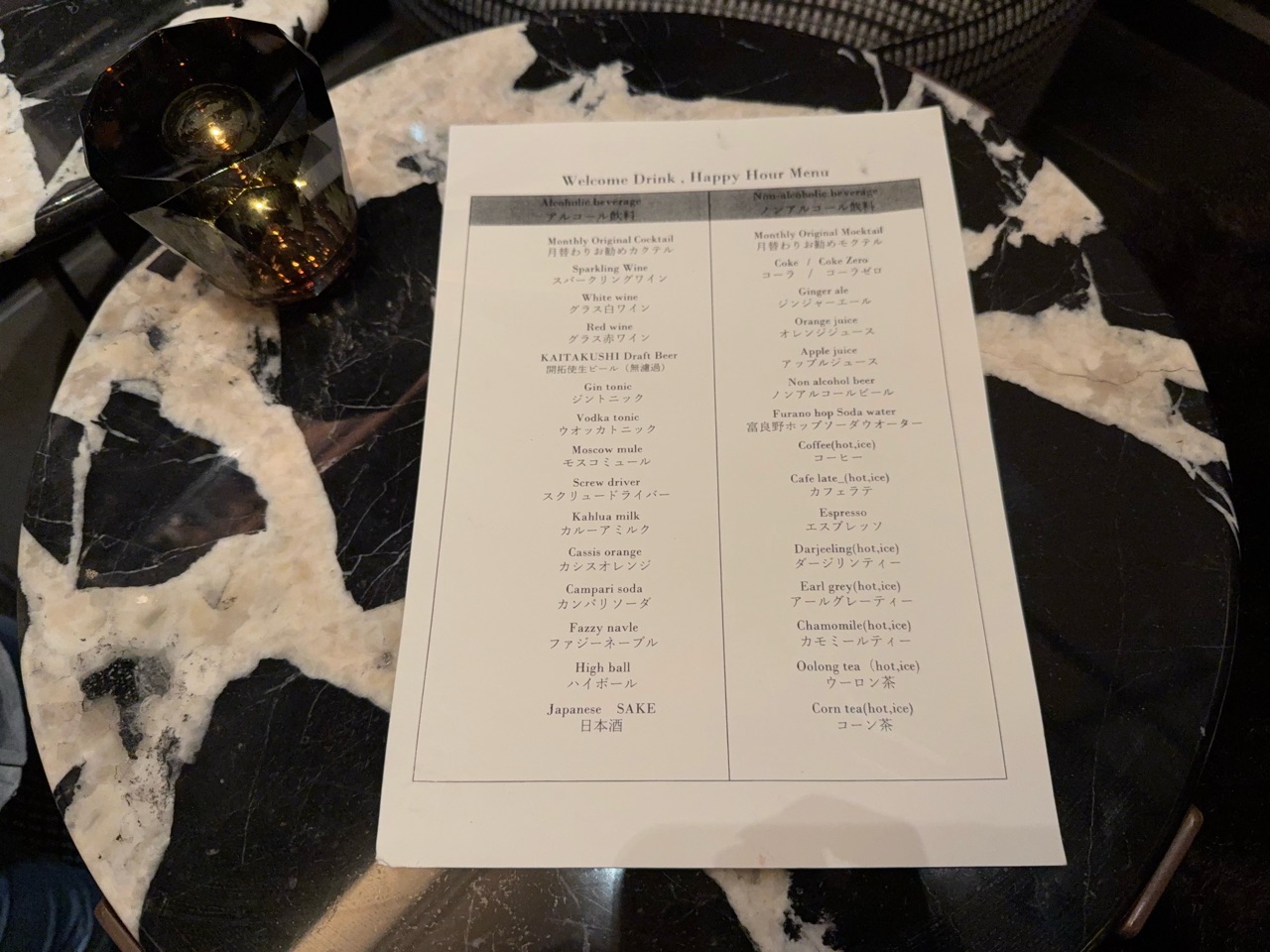 ドリンクは、アフヌン、ハッピーアワーともに共通メニューです。
