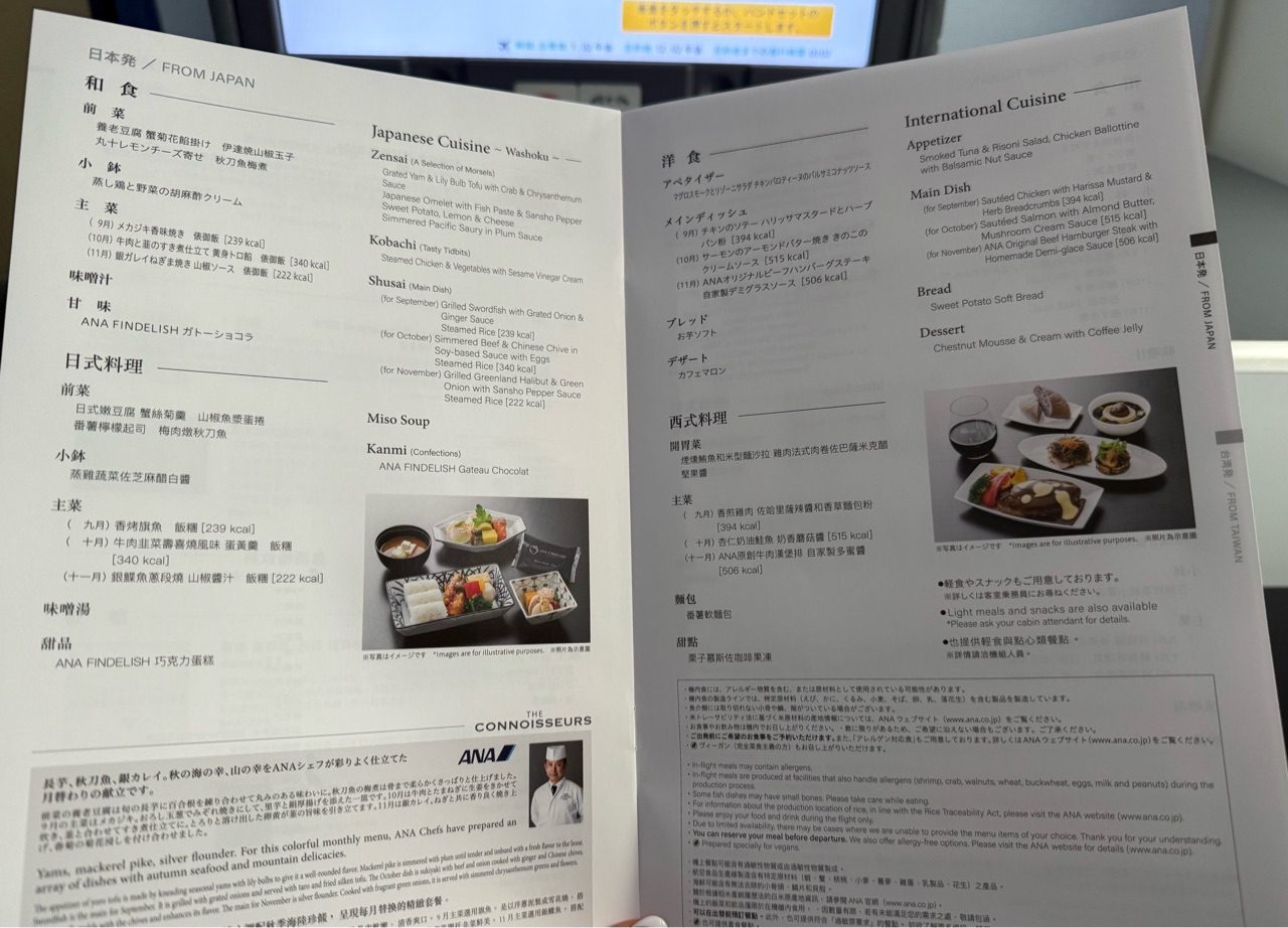 2025年10月に利用したANA 東京羽田ー台北松山の機内食です。