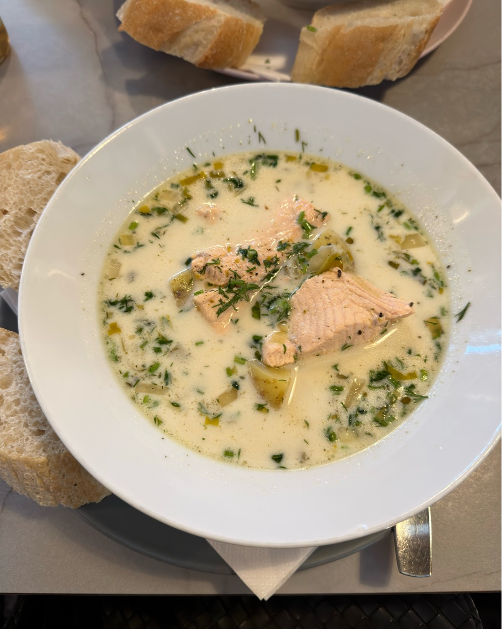 サーモンがゴロゴロ入っておいしかったです😋
