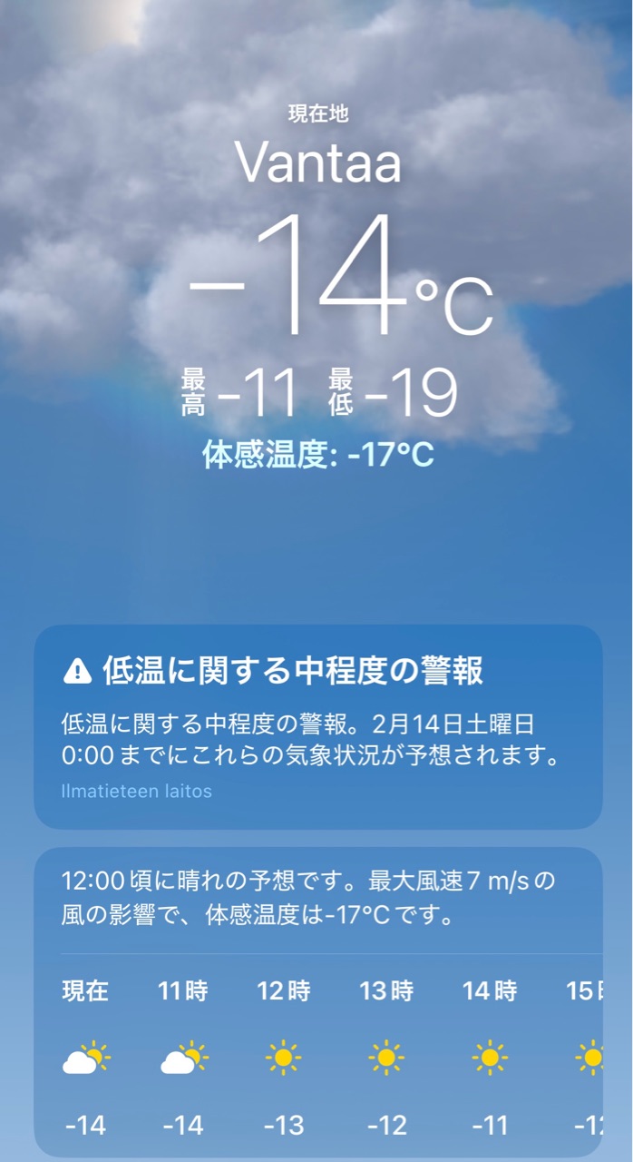 ヘルシンキの気温はこのくらいでした。