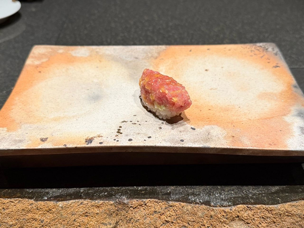 はじめの一貫、ウエルカム握りはトロたくで。