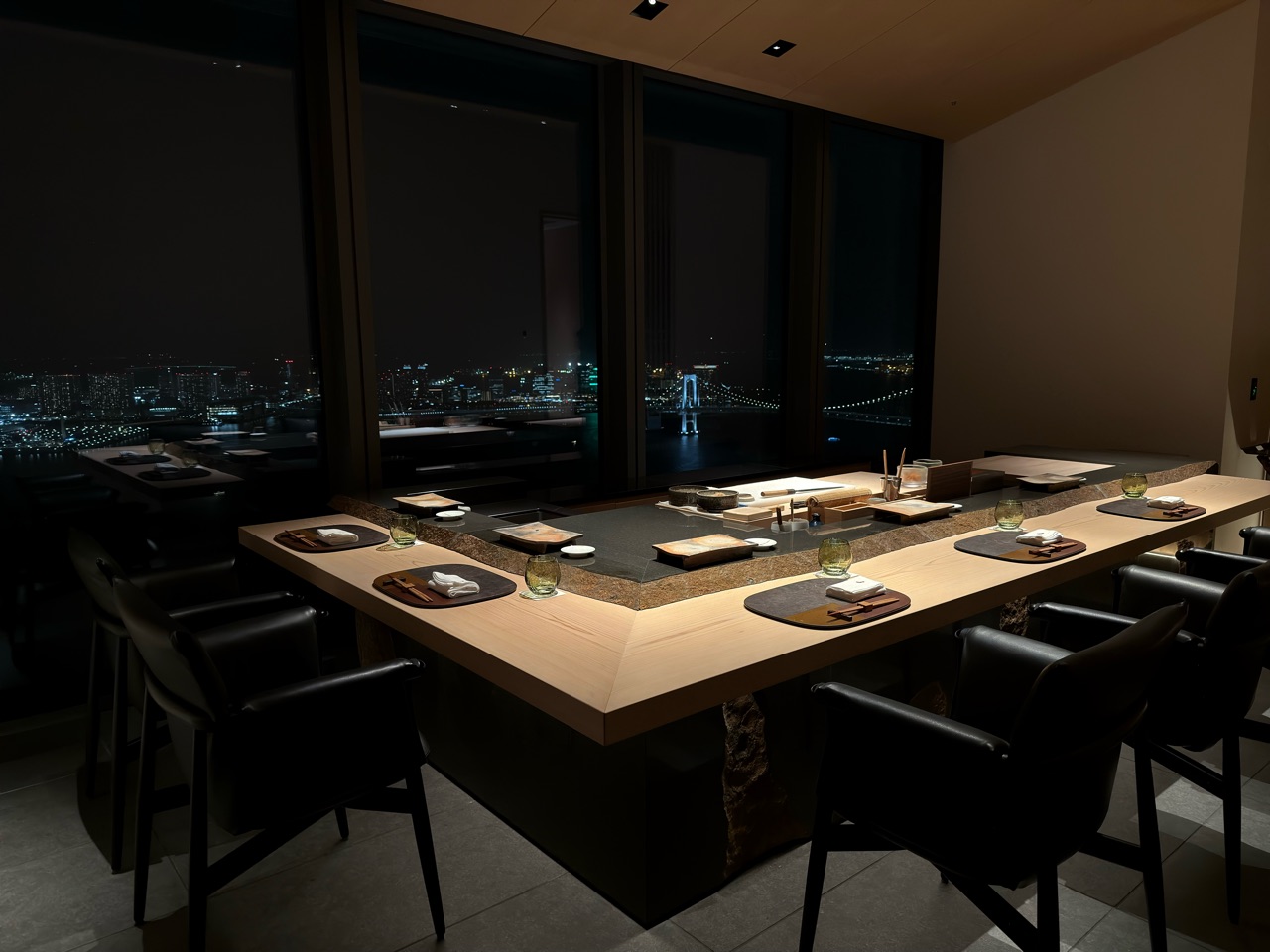 目の前には、レインボーブリッジとお台場の景色が広がり、なかなかバブリーな雰囲気。これは、海外からのゲストの方にも喜ばれそうです。