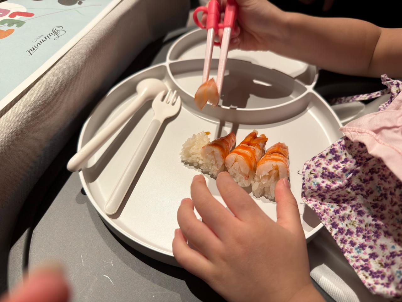 ミニサイズのシャリで握ってくださいました♫ お子様用寿司みたいで、かわいい。