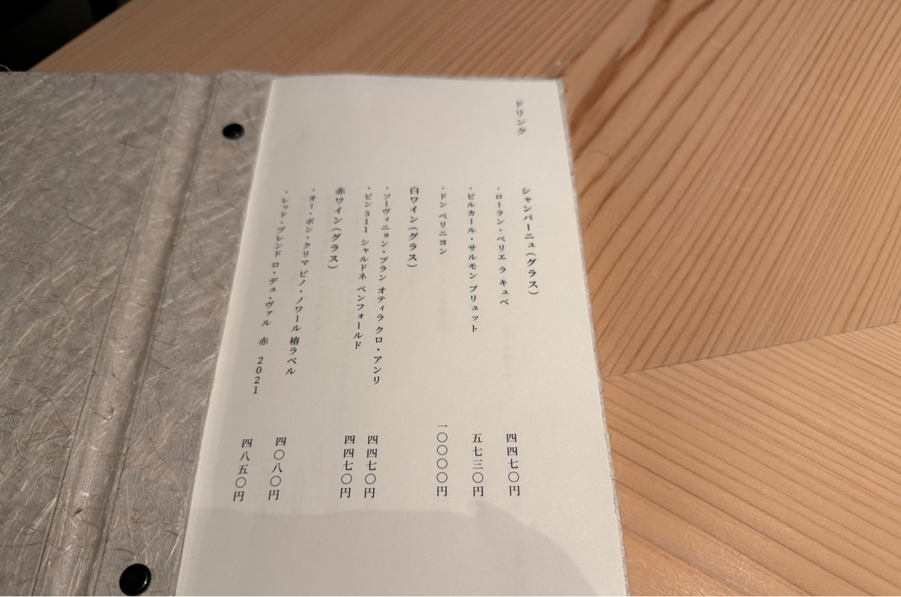 ドリンクメニュー。もちろん日本酒もたくさんありましたが、まずはグラスで泡を。 ドンペリもグラスで用意されていました。