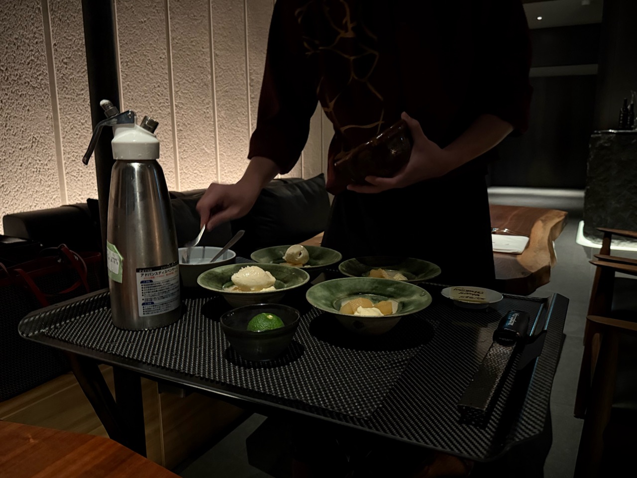 カウンター席は、お席にゆとりがある配置なので、お隣のお隣の人と話すならば、けっこう大きな声を出さなければ聞こえないくらいの距離感でしたので、他のゲストの方がいらっしゃらなくて、助かりました。