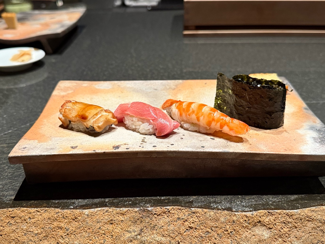 ただ、景色を一緒に楽しめるお寿司屋さんは、、、、、私の知る限り、台北にはないのではと思います。なので、こうして素敵な雰囲気の中、カウンターでお寿司いただけるのは、とても新鮮でうれしかったです。